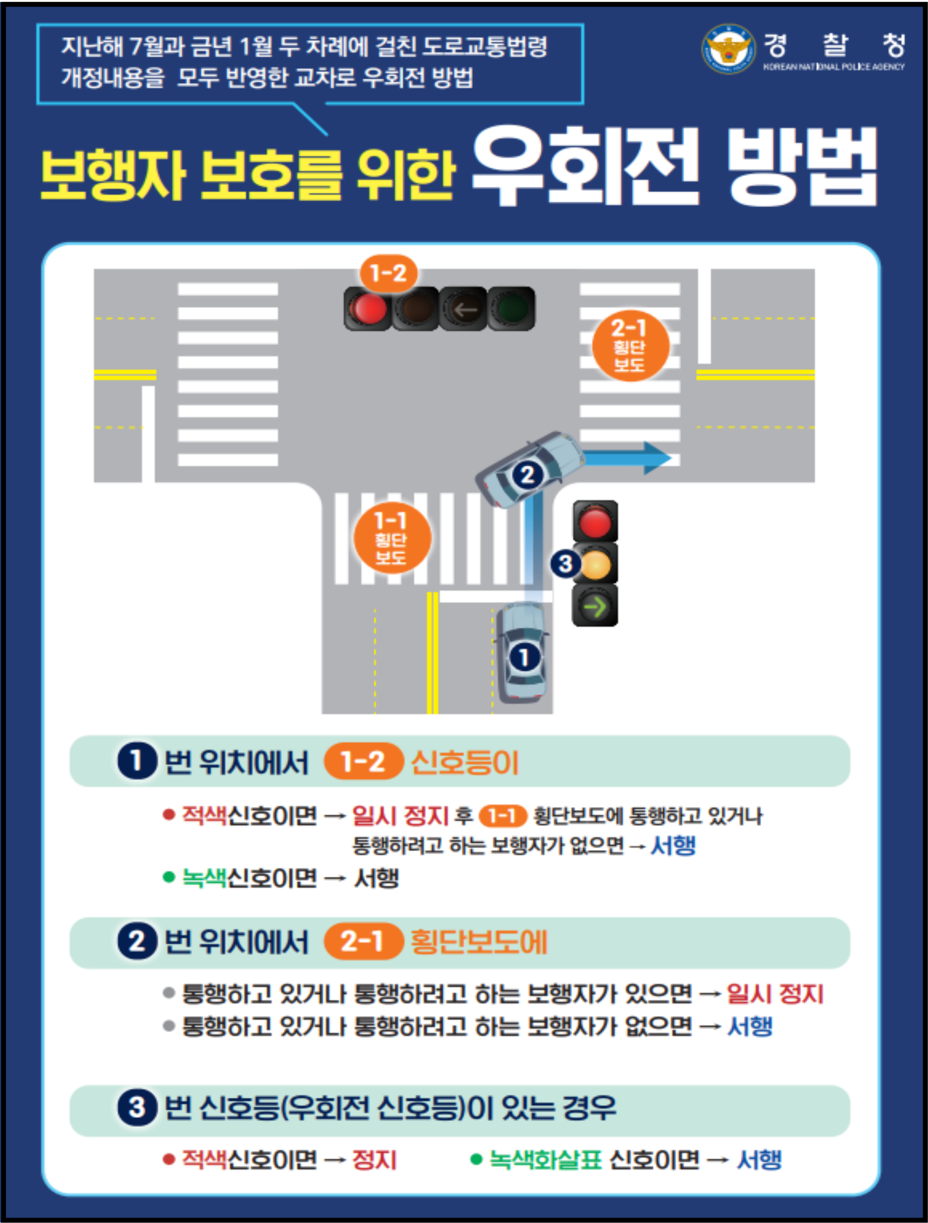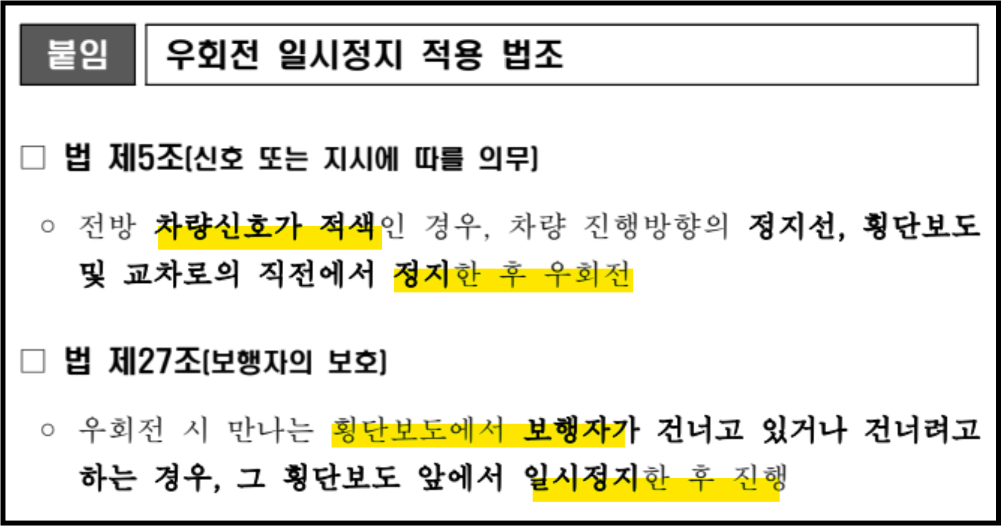 “우회전은 서행이 아니라, 무조건 정지 후 출발이다.”